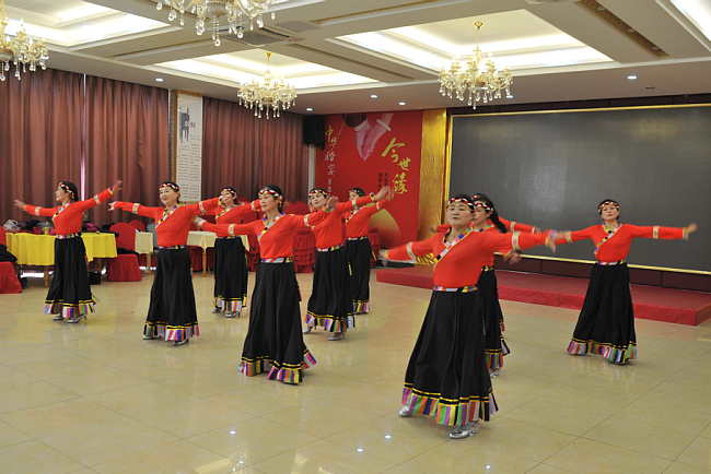 為展示淮海農(nóng)場(chǎng)軍墾文化的魅力,體現(xiàn)農(nóng)場(chǎng)退休職工的風(fēng)采,春節(jié)前夕,由10名退休女職工組成起來(lái)的一支淮海農(nóng)場(chǎng)老年舞蹈隊(duì),在淮海職教中心西大廳特地編排了一場(chǎng)哈噠舞,特地邀請(qǐng)農(nóng)場(chǎng)宣傳部門的技術(shù)人員,通過實(shí)時(shí)錄像并上傳網(wǎng)絡(luò),讓廣大愛好舞蹈的網(wǎng)民可以觀看到由農(nóng)場(chǎng)人自編自演的哈噠舞蹈。