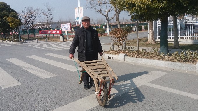2月8日,習(xí)近平總書記參觀淮海戰(zhàn)役紀(jì)念館時提到的小推車出現(xiàn)在緊臨淮海的六垛集市上。小推車擁有者是淮海三分場社區(qū)的退休干部徐傳友。