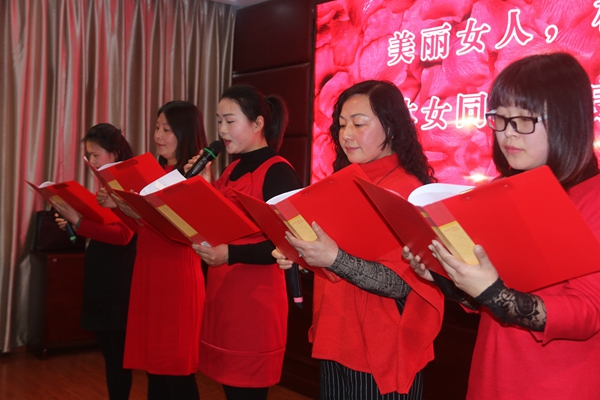 江蘇農(nóng)墾腫瘤醫(yī)院護理部主任楊軍和幼兒園園長吳蓓分別從辦公室保健、飲食營養(yǎng)搭配、心理保健、儀表著裝、形象禮儀、皮膚護理等多方面進行美容養(yǎng)生指導,打造健康陽光的女性形象。行業(yè)杰出女性代表美爾姿有限公司董事長田會玲、致富能手個體經(jīng)營戶祁兆花分享了他們的創(chuàng)業(yè)故事,真情實感地吐露創(chuàng)業(yè)過程中的艱辛坎坷、努力堅守以及獲得成功后的喜悅,樸實的語言感染了全場婦女同胞,鼓勵他們自強自立,爭先創(chuàng)優(yōu),爭做生活的強者。歌舞、詩朗誦、黃梅戲等多形式的才藝表演,更是將活動推向了高潮。舞蹈《天邊》和《落花情》展示了新洋女職工生動美麗的姿態(tài),詩朗誦《春天的歌唱》和《紅顏贊》表達出了積極向上的精神風貌,大合唱《沒有共產(chǎn)黨就沒有新中國》更是唱出了大家的心聲。在慶祝現(xiàn)場集輕松、幽默、趣味于一體的知識競猜活動,充分展示了新洋女性的智慧和才干。