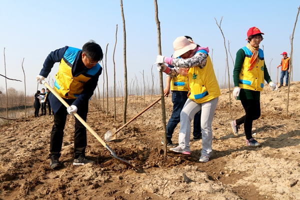 3月的新洋,春光旖旎,生機(jī)煥發(fā)。12日下午,150名志愿者分別集結(jié)新北生產(chǎn)區(qū)6大隊(duì)和7大隊(duì)防風(fēng)林帶,僅40分鐘就植下重陽木和水杉共3000棵,為“綠色生態(tài)新洋”描繪出濃墨重彩的一筆。