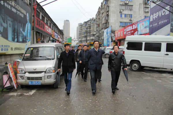 章朝陽現(xiàn)場考察了金橋裝飾材料市場、墻紙布藝大樓,通過實地考察,詳細了解市場內(nèi)商鋪出租情況和商戶經(jīng)營情況。