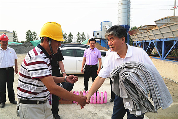 會(huì)后,佟曉廷主席一行在農(nóng)場公司領(lǐng)導(dǎo)的陪同下,冒著高溫來到連云港振港有限公司院內(nèi),慰問了正在更換變壓器的供電中心員工,為他們送去了遮陽帽、毛巾、香皂、洗衣液、清涼油等防暑用品,也將集團(tuán)公司工會(huì)和農(nóng)場公司黨委的關(guān)愛送到了他們心坎上。