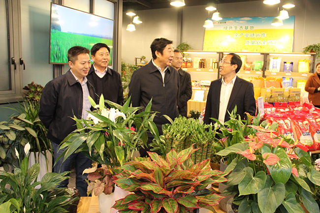 胡兆輝一行先后考察了蘇墾生態(tài)農(nóng)產(chǎn)品直銷中心和蘇墾知青之家。在直銷中心門店,胡兆輝詳細(xì)詢問了蘇墾大米、一宅一花經(jīng)營(yíng)情況;在知青之家,與當(dāng)年的下放知青親切交談,向他們通報(bào)第二故鄉(xiāng)的發(fā)展情況。胡兆輝現(xiàn)場(chǎng)辦公,對(duì)金橋公司與蘇墾米業(yè)、蘇墾園藝緊密合作圍繞農(nóng)墾主業(yè)拓展經(jīng)營(yíng)提出指導(dǎo)協(xié)調(diào)意見。