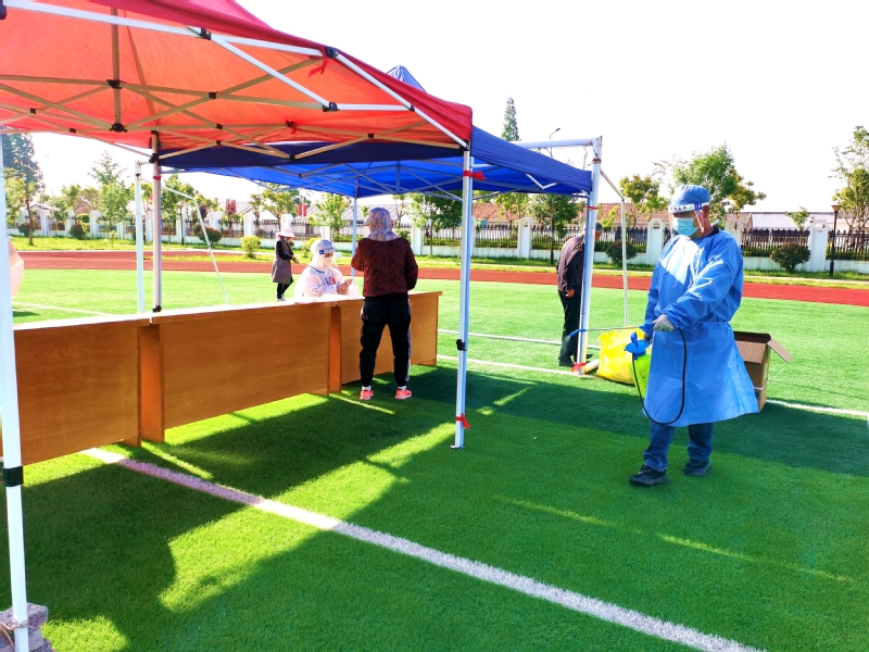 我在崗,您省心。“能做一點(diǎn)是一點(diǎn),疫情防控是我們大家共同的事。”姜明亮是社區(qū)機(jī)關(guān)黨支部一名預(yù)備黨員,當(dāng)他得知5月3日夜班值班人員臨時(shí)有事便主動請纓,從晚上八點(diǎn)到次日早晨八點(diǎn),他把承諾當(dāng)做責(zé)任來踐行。5月4日農(nóng)場組織全員核酸檢測,他一掃夜班值守的疲憊,直奔迎湖健身廣場核酸采樣點(diǎn),背上消毒機(jī)進(jìn)行現(xiàn)場環(huán)境消殺。劉圩小學(xué)采樣點(diǎn),只見一位“小藍(lán)”手拿擴(kuò)音喇叭對著居民喊話:“病毒無情人有情,健康連著你我他,請大家保持一米線?!苯?jīng)過仔細(xì)辨認(rèn)大家才認(rèn)出她是社區(qū)財(cái)務(wù)劉玉。“平時(shí)聲音不大,維持秩序時(shí)聲音倒不小?!贝蠹壹娂姙樗c(diǎn)贊?!澳?,請出示身份信息?!比謭龉ぷ魅藛T劉昕身穿白色防護(hù)服,正忙著采集身份信息。朝陽下,汗水浸透了衣衫、曬紅了臉頰,他卻沒有一聲抱怨。當(dāng)天他共采集490個信息,這也是他連續(xù)五次完成三分場采集點(diǎn)數(shù)據(jù)采集任務(wù)。