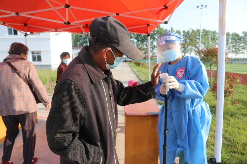 黨有號(hào)召,團(tuán)有行動(dòng)。一大早,農(nóng)場公司青年黨員、團(tuán)員來到現(xiàn)場,維持秩序、督促掃碼測(cè)溫、認(rèn)真核對(duì)居民身份信息,以實(shí)際行動(dòng)書寫志愿精神,用奮勇爭先詮釋青年力量。