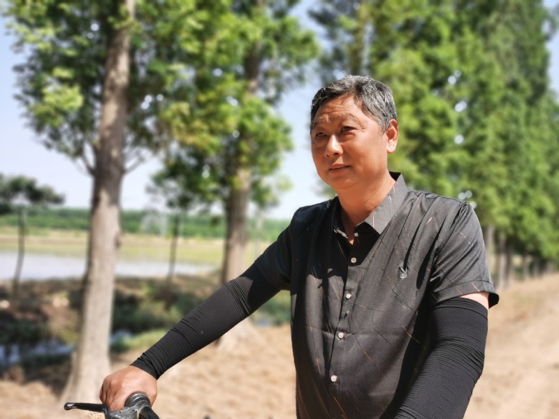 6月15日,一個黑臉、黑衣的身影忙碌在寶應(yīng)湖12隊田間地頭,他一會兒守庫房和工人一起運(yùn)肥料,一會兒站田頭檢查小秧栽插質(zhì)量,他就是12隊“當(dāng)家人”王國來。