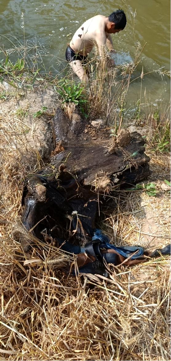 這時(shí)正好路過(guò)這里的27大隊(duì)職工,共產(chǎn)黨員周建明看到后,看著快要漫上田埂的水流,為了盡快解決問題,他想都沒想,立刻脫了外衣,毅然跳進(jìn)一人多深的河里。他時(shí)而在河里反復(fù)摸索,時(shí)不時(shí)地悶下水去,摸出了一堆樹根和破衣爛衫。