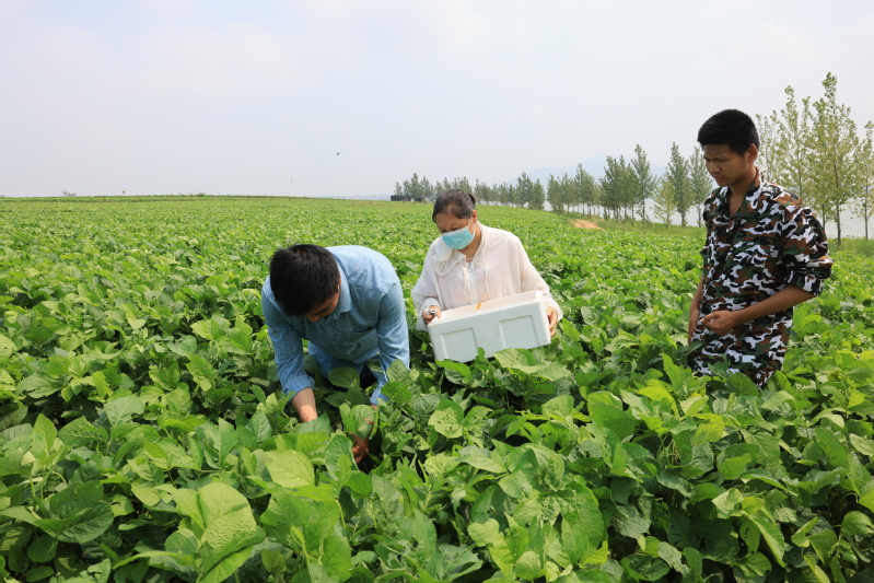 7月2日,在贛榆區(qū)塔山鎮(zhèn)店子村豆丹養(yǎng)殖基地,崗埠農(nóng)場公司富民科技園技術(shù)人員正在一絲不茍地教當(dāng)?shù)卮迕裢斗?/span>豆丹蟲卵,大家不顧高溫,小心翼翼地用粘著豆丹蟲卵的牛皮紙,包裹好嫩綠的黃豆葉,然后用訂書機訂好。