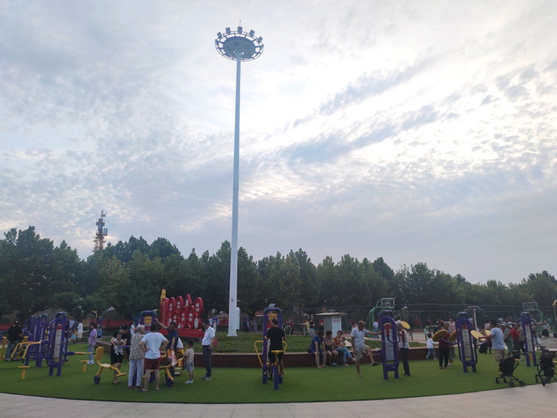 7月19日傍晚,江蘇省射陽縣淮海農(nóng)場職工休閑體育運(yùn)動廣場重新開放,廣場南側(cè)橢圓形的花池邊,新安裝的34套嶄新的健身器材立即吸引了周邊的職工居民和孩童等前來愜意地玩耍,場面十分熱鬧壯觀。