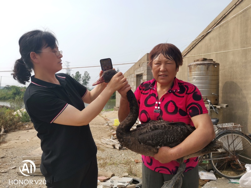 第二天,潘振海就將發(fā)現(xiàn)黑天鵝的情況告訴了分場(chǎng)干事,請(qǐng)他上報(bào)農(nóng)場(chǎng)相關(guān)部門。分場(chǎng)干事接到信息后,立即與淮海農(nóng)場(chǎng)社區(qū)綜合管理科負(fù)責(zé)林業(yè)和畜禽養(yǎng)殖的王增平聯(lián)系。于是王增平立即找到農(nóng)場(chǎng)獸醫(yī)站的畜禽專家朱正華一同前往。