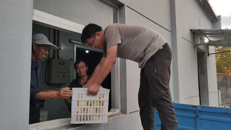 下午六點(diǎn),掛完水的張偉又回到了工作崗位上,開始搬運(yùn)采摘下來的梨子,汗水浸濕了他的衣服,但他只顧埋頭干活,毫無怨言,毫不退縮。當(dāng)被問到生病怎么都不休息一下的時(shí)候,他說:“正是梨子銷售旺季,大家都在加班加點(diǎn),我不能拖后腿,能堅(jiān)持就堅(jiān)持一下。”