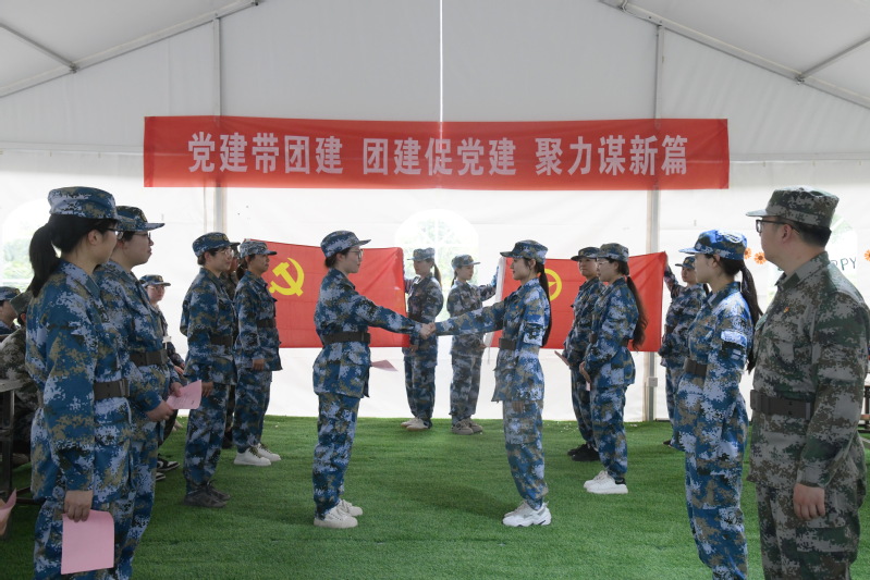 5月13日,淮海農(nóng)場有限公司黨委和團(tuán)委開展“黨建引領(lǐng)、團(tuán)建賦能、凝聚青春奮斗力量”主題活動,近50名40周歲以下青年員工來到連云港云水灣拓展基地,開展戶外拓展活動。圖為青年員工在開展“黨建帶團(tuán)建 團(tuán)建促黨建 聚力謀新篇”黨團(tuán)員結(jié)對儀式。