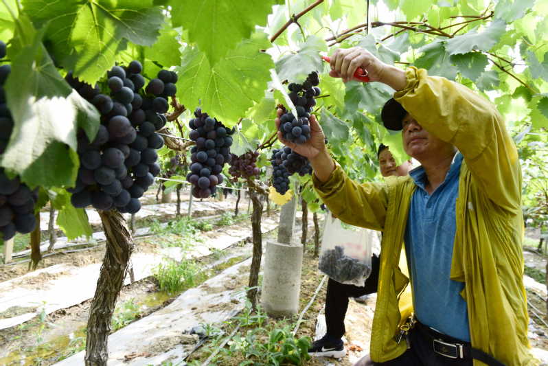 據(jù)了解,園內(nèi)種植品種“夏黑”和“陽光玫瑰”等葡萄品種,畝產(chǎn)量可達(dá)4000斤上下。特別是其統(tǒng)一施用農(nóng)家肥、無公害防蟲防病、反光膜覆蓋、科學(xué)滴灌、疏果等措施,輔助于智能化的通風(fēng)調(diào)溫、噴淋調(diào)水和調(diào)節(jié)光照設(shè)施的開展,合理調(diào)節(jié)土壤水分,降低田間溫、濕度,也減輕各類病蟲害的侵襲,讓葡萄按規(guī)定設(shè)計(jì)的要求進(jìn)行掛果,確保種出安全、優(yōu)質(zhì)的葡萄提供給消費(fèi)者。
