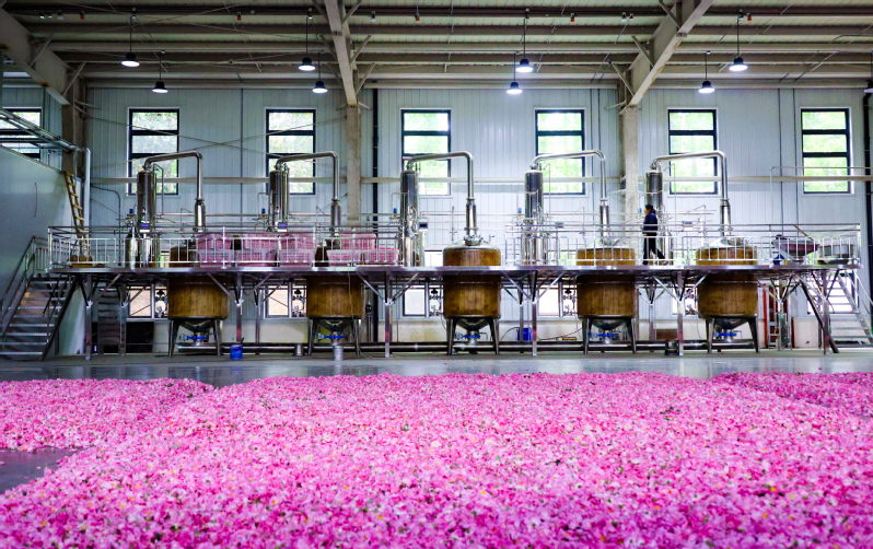 2017年,公司轉(zhuǎn)型升級(jí),依托當(dāng)?shù)鬲?dú)特氣候,建成400畝大馬士革玫瑰標(biāo)準(zhǔn)化示范基地,鮮花畝產(chǎn)量穩(wěn)定在550公斤以上,種植水平行業(yè)領(lǐng)先。2020年4月,品牌在原有基礎(chǔ)上新增芳香油、化妝品等品類注冊(cè),聯(lián)合上海愛迦儷日用化妝品廠,以自產(chǎn)玫瑰精油、純露為原料,推出純露、復(fù)方精油、保濕精華水、修護(hù)面膜、香薰等天然護(hù)膚品,迅速贏得市場(chǎng)青睞。品牌聚焦技術(shù)創(chuàng)新,自主研發(fā)的循環(huán)式多功能香料提取設(shè)備等成果,斬獲五項(xiàng)國(guó)家專利。