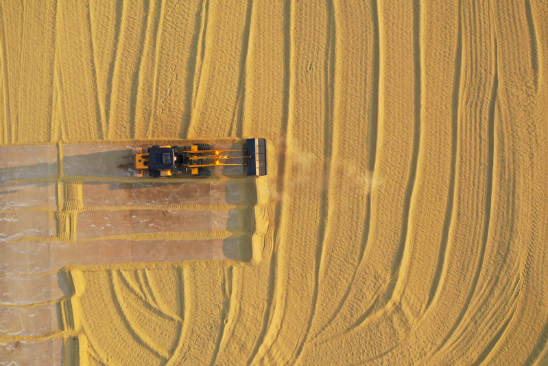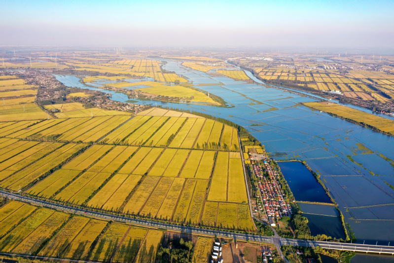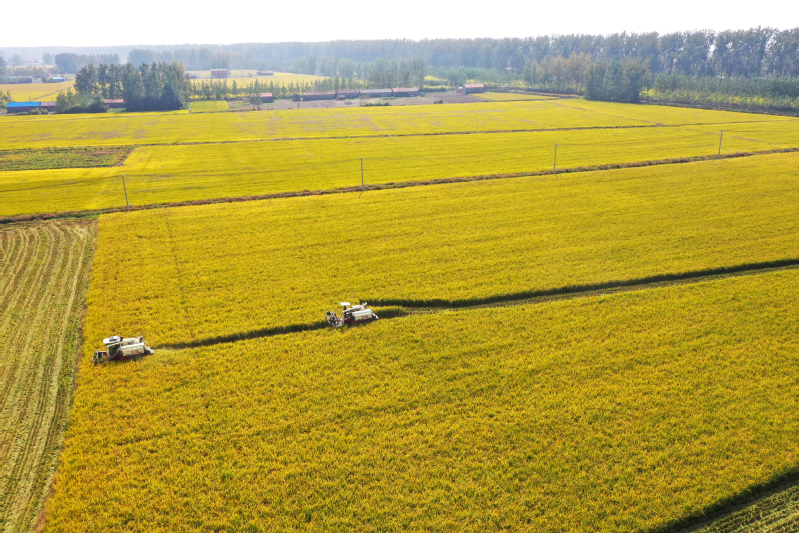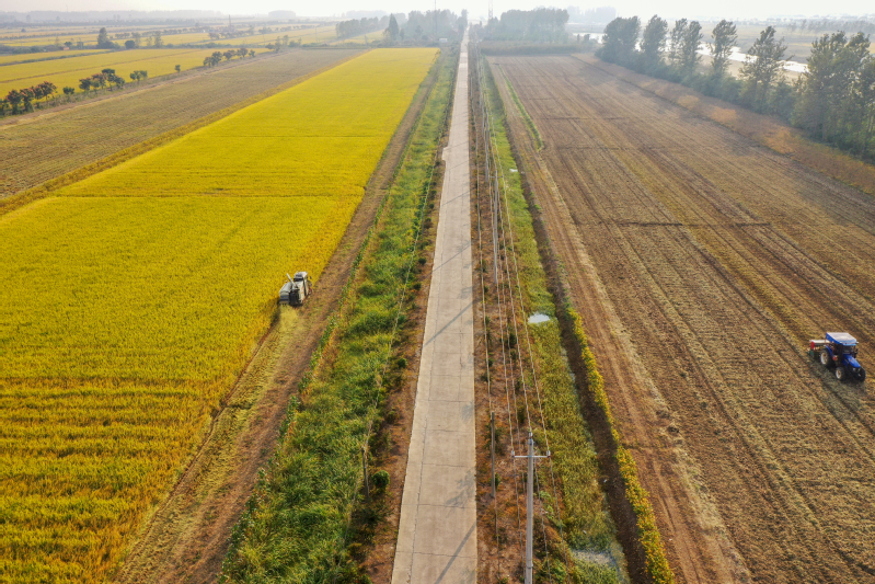 金秋十月,豐收季節(jié)。高空俯瞰寶應(yīng)湖農(nóng)場,田間地頭,收割機來回穿梭,曬糧場,稻谷飄香,處處呈現(xiàn)如畫般的豐收美景。水稻收割完之后,旋耕機、播種機隨即“登場”,將一粒粒麥種播撒進田間,為來年豐收打下基礎(chǔ)。