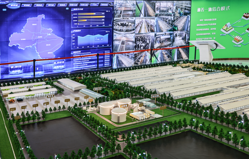 生態(tài)化發(fā)展加速轉(zhuǎn)型。牧場(chǎng)智慧生態(tài)系統(tǒng)中,污水循環(huán)管理設(shè)備包含牧場(chǎng)污水管路3D圖與污水監(jiān)測(cè)點(diǎn)位信息,做到實(shí)時(shí)監(jiān)測(cè)牧場(chǎng)污水指標(biāo),并將數(shù)據(jù)同步上傳至環(huán)保局,確保牧場(chǎng)水質(zhì)監(jiān)管到位。沼氣發(fā)電系統(tǒng)將標(biāo)準(zhǔn)化工藝處理糞污產(chǎn)生的沼氣,用于發(fā)電后接入國(guó)家電網(wǎng),沼液利用后的沼渣作為奶牛牛床墊料的生產(chǎn)原料,不僅成本低,更大大降低了養(yǎng)殖風(fēng)險(xiǎn)。同時(shí)在場(chǎng)區(qū)配備廢氣檢測(cè)設(shè)備監(jiān)測(cè)養(yǎng)殖氣體環(huán)境,配備消防監(jiān)控設(shè)備監(jiān)測(cè)飼草區(qū)與沼氣發(fā)電區(qū)域煙火狀況。智能生態(tài)系統(tǒng)采取糞污固體發(fā)酵、沼氣烘干回床、沼液還田方式,實(shí)現(xiàn)“變廢為寶”。對(duì)牧場(chǎng)糞污發(fā)酵后的液位進(jìn)行采集,經(jīng)過無害化處理后的沼液通過預(yù)設(shè)專用管道,在卷盤式噴灌機(jī)的運(yùn)轉(zhuǎn)下自動(dòng)噴灑在專屬消納用地的田間作物上,形成種養(yǎng)一體循環(huán),有效提高了糞污綜合利用水平。