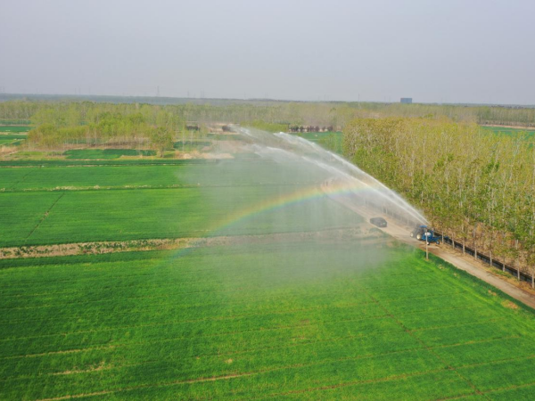 相較傳統(tǒng)漫灌,新技術(shù)每畝可節(jié)省水資源60%以上,灌溉時間、成本顯著下降;因水肥同步利用率提升,小麥有效分蘗數(shù)增加,預(yù)計每畝可增產(chǎn)糧食100斤,實現(xiàn)抗旱、節(jié)水、增產(chǎn)的效果。