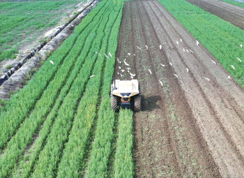 小滿時節(jié),位于江蘇省淮安市金湖縣的江蘇農(nóng)墾寶應(yīng)湖農(nóng)場歐盟國標(biāo)雙認證的有機稻種植基地,一臺無人智能拖拉機正在進行旋耕作業(yè)。這臺無人智能拖拉機由丘沃智能科技自主研發(fā),實現(xiàn)效率與油耗的聯(lián)合優(yōu)化控制。通過AI作業(yè)規(guī)劃算法,農(nóng)機和農(nóng)具可自主協(xié)同形成覆蓋作業(yè)方案,實現(xiàn)24小時無人化精準(zhǔn)作業(yè),單日耕作面積達700畝,較傳統(tǒng)模式效率提升3倍?! ×旱卤z(來源:大國三農(nóng))