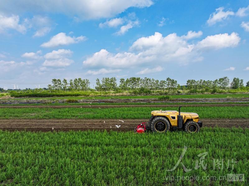 2025年5月16日,位于江蘇省淮安市金湖縣的江蘇農(nóng)墾寶應(yīng)湖農(nóng)場(chǎng)歐盟國標(biāo)雙認(rèn)證的有機(jī)稻種植基地,一臺(tái)240馬力無人智能拖拉機(jī)正在進(jìn)行旋耕作業(yè)。