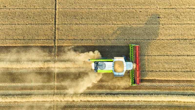 6月4日,江蘇省鹽城市射陽縣,江蘇農(nóng)墾新洋農(nóng)場組織大型聯(lián)合收割機搶收小麥,確保顆粒歸倉。
