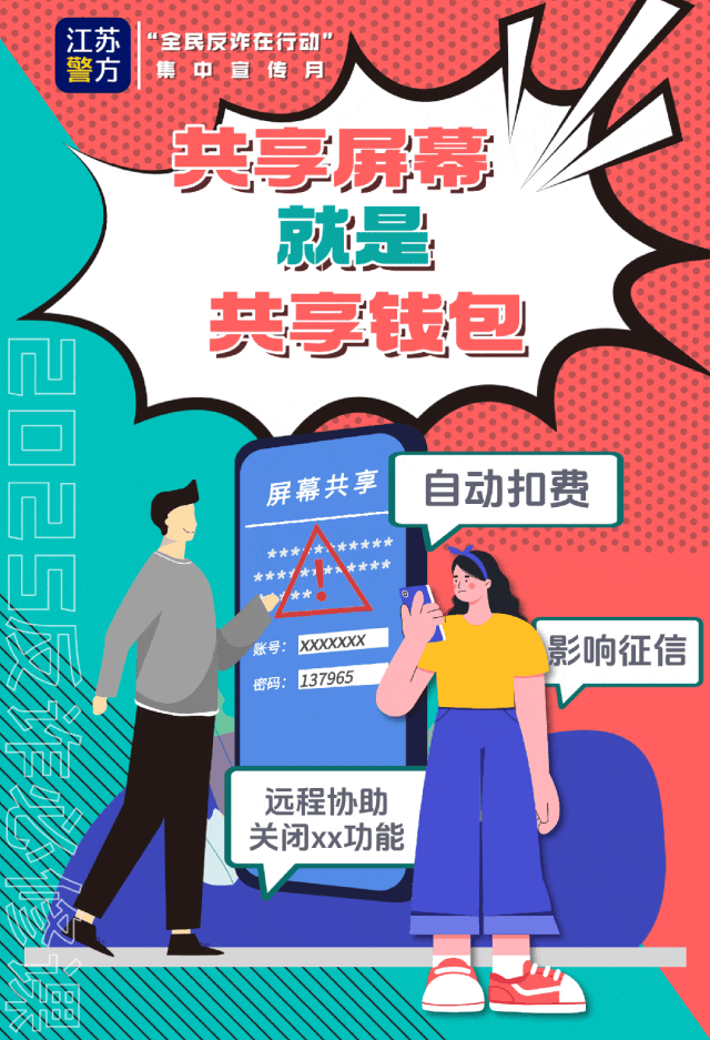 劃重點:騙子以自動扣費、影響征信等為由,聲稱需要關(guān)閉某項服務(wù),并可以通過共享屏幕來“手把手”教學。但事實上,一旦共享屏幕,就等于共享了所有信息,你的驗證碼、密碼都將在對方的屏幕上一覽無遺。
