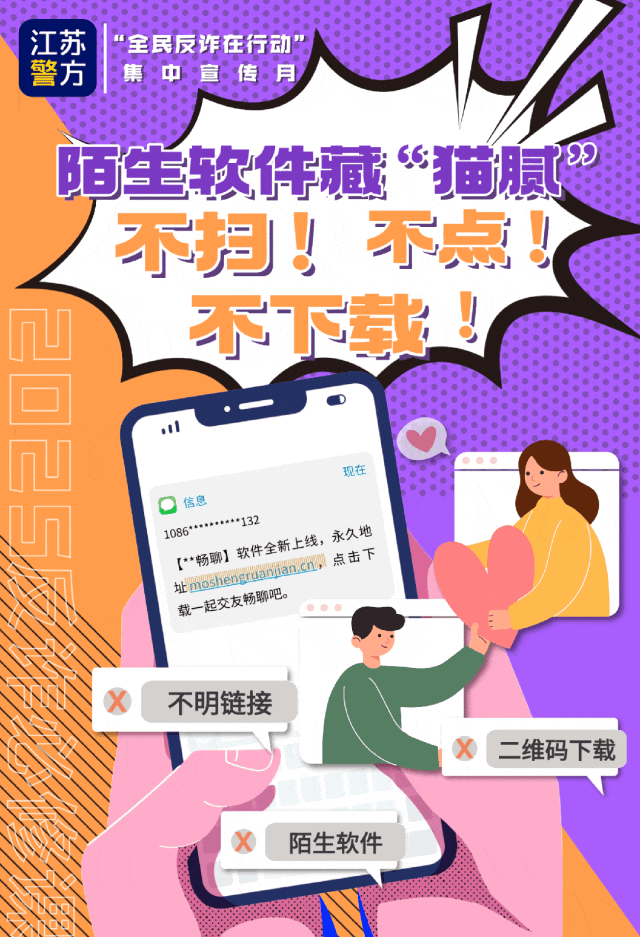 劃重點:一些陌生聊天軟件,往往缺乏嚴格監(jiān)管,容易被騙子利用,來發(fā)送詐騙鏈接、圖片,甚至是能自動獲取信息的手機“病毒”,務(wù)必提高警惕。
