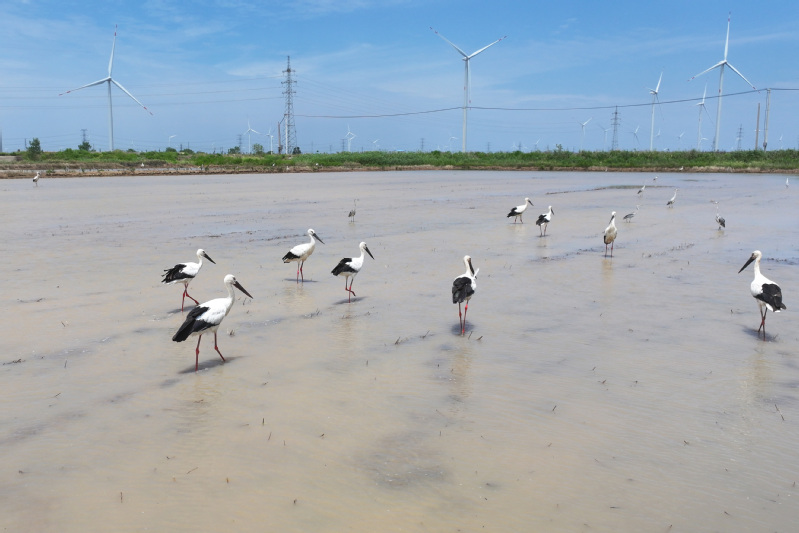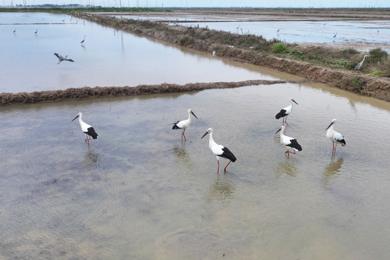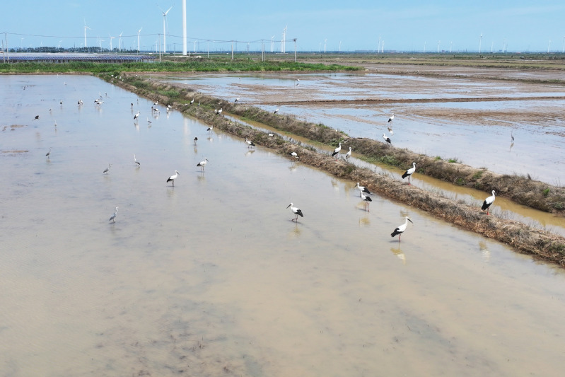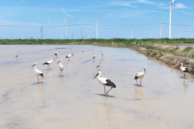 6月23日,江蘇省鹽城市射陽縣臨海農(nóng)場順泰生產(chǎn)區(qū)的水田里,50余只國家一級(jí)保護(hù)動(dòng)物東方白鸛姿態(tài)優(yōu)雅,正悠然漫步、覓食,與水田的碧波相互映襯,構(gòu)成一幅靈動(dòng)的生態(tài)畫卷。
