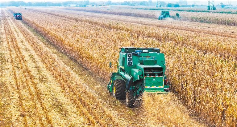 10月15日,農(nóng)機手駕駛收割機在江蘇省連云港市云臺農(nóng)場小汪生產(chǎn)區(qū)田間收割玉米。該市整合63個烘干中心,295臺烘干機開足馬力,日烘干能力可達1.02萬噸,確保秋糧應收盡收。 王健民攝
