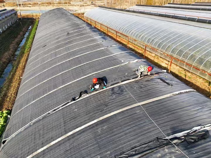 “把保溫膜拉得緊一些,主要是接縫處要全部覆蓋,否則影響保溫效果。”12月1日,在園區(qū)的12號溫室大棚,工作人員楊維祥和竇雙雙正在修復破損的外保溫被?!鞍俸匣ㄓ龅胶涮鞖庖矔忻啊?,必須營造良好的室內溫度?!睏罹S祥一邊固定保溫棉被一邊介紹,保溫棉被不僅能夠減少熱量的散失,還能保持土壤濕度,為大棚百合花創(chuàng)造相對穩(wěn)定的生長環(huán)境。為保證保溫效果,他們還特別注意保溫棉被的覆蓋密度和固定方式,確保大棚里的百合花都能平穩(wěn)抵御低溫。