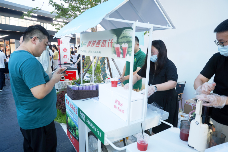 6月29日,“蘇超”聯(lián)賽焦點戰(zhàn)——南通隊對陣宿遷隊的較量火熱打響,蘇錫通園區(qū)楓葉小鎮(zhèn)奧特萊斯“第二現(xiàn)場”化身一片歡樂海洋。場內(nèi),巨幕大屏實時捕捉著賽場每一寸風(fēng)云變幻,將攻防轉(zhuǎn)換的緊張刺激清晰投射;場外,攤車次第鋪開,循著光影軌跡駛?cè)胪挼拿朗惩鯂?。南通公司順勢借“蘇超”賽事的火熱東風(fēng),特別推出農(nóng)場直供的鮮榨西瓜汁——炎炎夏日里,這份冰爽與甘甜恰似一劑及時的“救贖”。捧起西瓜汁猛灌一口,帶著沙沙綿密口感的清甜瞬間漫過舌尖,將積攢整日的燥熱滌蕩一空。賽事開始后,現(xiàn)場氣氛愈發(fā)沸騰,數(shù)千人流交織著歡聲與笑語,鮮榨西瓜汁也順勢迎來了銷售熱潮。當(dāng)晚9時,所有鮮榨西瓜汁便銷售一空。杯盞間的余味里,那一份清爽甘洌陪伴著意猶未盡的旅客,將賽事熱情延續(xù)到深夜。