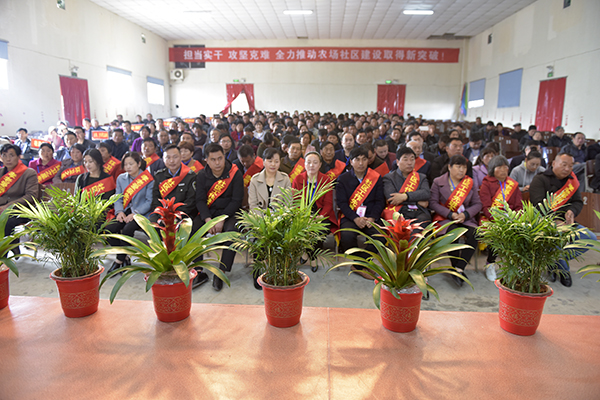 大會在莊嚴(yán)的國歌聲中宣告開幕,社管會常務(wù)副主任朱立榮作了題為《擔(dān)當(dāng)實干 攻堅克難 全力推動農(nóng)場社區(qū)建設(shè)取得新突破》的工作報告,回顧總結(jié)了2017年工作的成績和經(jīng)驗,分析歸納了社區(qū)建設(shè)中存在的困難和矛盾,明確提出了2018年工作的總體要求、主要目標(biāo),強(qiáng)調(diào)一要完善居民自治體系,提升社區(qū)治理水平;二要夯實基礎(chǔ)管理工作,提升社區(qū)行政效能;三要強(qiáng)化社區(qū)功能建設(shè),提升社區(qū)服務(wù)水平;四要加強(qiáng)社區(qū)環(huán)境治理,建設(shè)幸福美好家園;五要推進(jìn)社會職能改革,確保完成目標(biāo)任務(wù);六要創(chuàng)新黨建工作格局,發(fā)揮政治引領(lǐng)作用。大會以舉手表決的形式一致通過了上述報告及城鎮(zhèn)管理和環(huán)境保護(hù)兩個辦法,沈會生宣讀關(guān)于社區(qū)工作報告的決議。會上,各居委會及相關(guān)單位遞交了社區(qū)管理目標(biāo)責(zé)任狀或共駐共建協(xié)議。紀(jì)委書記、工會主席韓躍武宣讀社區(qū)表彰決定,對2017年度防違治違工作先進(jìn)單位、環(huán)衛(wèi)工作先進(jìn)單位以及孝老愛親先進(jìn)個人、志愿服務(wù)先進(jìn)個人、文明居民、環(huán)衛(wèi)之星和社區(qū)工作先進(jìn)個人等進(jìn)行了表彰并頒獎。會上,社會事業(yè)科科長陳云祥作了題為《勇于擔(dān)當(dāng)抓落實 強(qiáng)化執(zhí)行促發(fā)展》的交流發(fā)言,健康居委會主任李永新作了題為《創(chuàng)新社區(qū)治理 共建幸福家園》的交流發(fā)言,六支居委會主任竇同春作了題為《搶抓機(jī)遇 乘勢作為 全力打造“美麗鄉(xiāng)村”金名片》的交流發(fā)言。