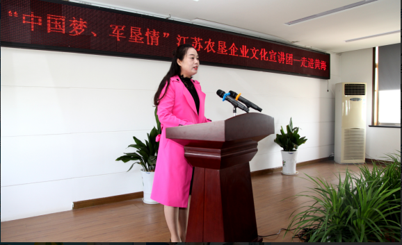 蘇墾農(nóng)發(fā)黃海分公司總經(jīng)理王亦勤作宣講會(huì)致詞。他說,在集團(tuán)公司黨委的正確領(lǐng)導(dǎo)下,近年來,墾區(qū)上下大力弘揚(yáng)社會(huì)主義核心價(jià)值觀和江蘇農(nóng)墾企業(yè)精神,在努力構(gòu)筑思想文化建設(shè)高地和道德風(fēng)尚建設(shè)高地、奮力推進(jìn)現(xiàn)代農(nóng)業(yè)企業(yè)建設(shè)中,涌現(xiàn)出不少可歌可頌、撼人心魄的故事,形成了推動(dòng)江蘇農(nóng)墾經(jīng)濟(jì)社會(huì)發(fā)展的強(qiáng)大合力。希望以此次“江蘇農(nóng)墾故事”宣講會(huì)為契機(jī),進(jìn)一步詮釋和領(lǐng)悟江蘇農(nóng)墾使命、愿景、價(jià)值觀和企業(yè)精神等核心理念,引領(lǐng)和激勵(lì)廣大干群堅(jiān)定理想信念,堅(jiān)守正義良知,崇德尚善,見賢思齊,形成推進(jìn)江蘇農(nóng)墾“十三五”規(guī)劃在黃海大地全面落實(shí)落細(xì)的良好態(tài)勢(shì)。