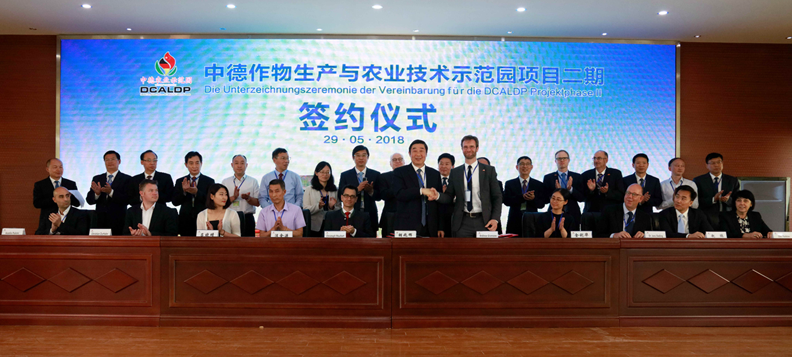 5月29日,中德作物生產與農業(yè)技術示范園第四屆“田間日”活動暨項目二期簽約儀式在蘇墾農發(fā)黃海分公司舉行。集團公司總經理、蘇墾農發(fā)股份公司董事長胡兆輝出席并代表蘇墾農發(fā)股份公司與與德國GFA咨詢集團有限公司項目經理安德列斯•伽木措先生及德國9家合作企業(yè)代表簽約。集團公司紀委書記章朝陽出席并觀摩田間活動。集團公司黨委委員、蘇墾農發(fā)股份公司總裁蘇志富致辭。德國聯(lián)邦食品與農業(yè)部國際合作與世界營養(yǎng)司副司長弗里德里希•瓦克行先生、中國農業(yè)農村部國際合作司歐洲處副處長劉江女士分別講話。中德示范園主任王亦勤主持并與示范園德方負責人托馬斯•伊利斯分別從中德雙方不同的角度做一期成果匯報與二期項目規(guī)劃展望黃海農場有限公司董事長、總經理單祥忠等出席會議。