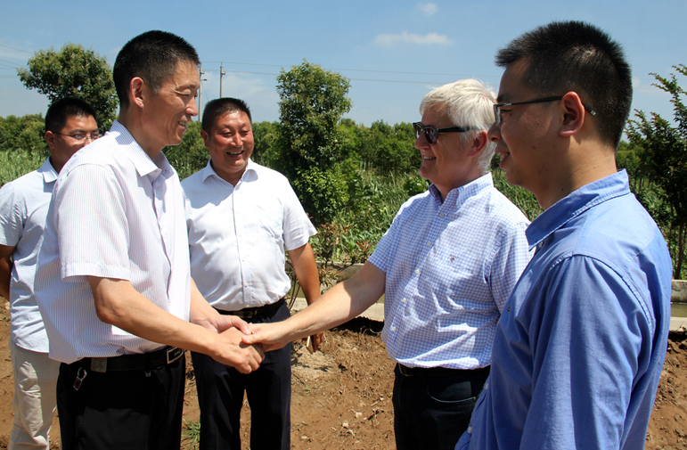 隨后,考察團(tuán)來到中德示范園種植基地,先后參觀了水稻缽苗擺栽現(xiàn)場(chǎng),玉米品種小區(qū)試驗(yàn)現(xiàn)場(chǎng),旱直播水稻現(xiàn)場(chǎng)和大豆品種試驗(yàn)和株行距試驗(yàn)現(xiàn)場(chǎng),Eric Doser對(duì)于水稻缽苗擺栽產(chǎn)生了極大的興趣,對(duì)于一個(gè)以旱作物為主的國(guó)家來說,中國(guó)的水稻生產(chǎn)技術(shù)和機(jī)械化水平著實(shí)讓考察團(tuán)的每一位成員感到驚奇。