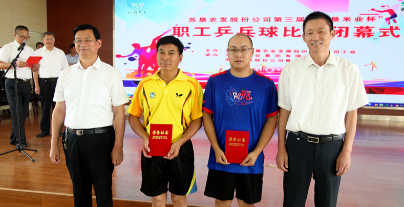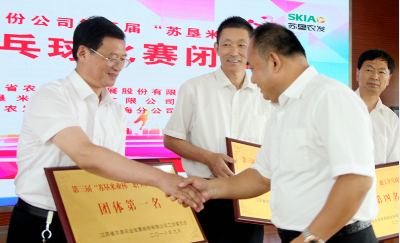 此次比賽共決出團(tuán)體和男單兩個(gè)項(xiàng)目的前六名和十二強(qiáng)。經(jīng)過兩天緊張激烈的比賽, 新洋分公司代表隊(duì)脫穎而出,榮獲團(tuán)體第一名,第二至第六名的代表隊(duì)分別為:黃海分公司、蘇墾米業(yè)、東辛分公司、三河分公司、白馬湖分公司。新洋分公司的王光軼榮獲男子單打第一名,三河分公司項(xiàng)永寶、新曹分公司顧文才分獲二、三名。新洋分公司、黃海分公司、蘇墾米業(yè)、東辛分公司獲得賽會組織獎(jiǎng);南通分公司榮獲精神文明獎(jiǎng)。