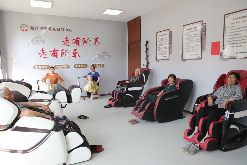 新洋積極應(yīng)對(duì)養(yǎng)老服務(wù)新需求,投入600多萬元新建1128平方米的一體式綜合服務(wù)大廳,內(nèi)設(shè)康復(fù)訓(xùn)練室、理療室、兒童樂園、棋牌室、書畫閱覽室、綜合活動(dòng)廳、助浴室以及餐廳等,在軟硬件投入、人員配備、管理服務(wù)、養(yǎng)老環(huán)境等多維度提質(zhì)增效,收獲了轄區(qū)老人的高度好評(píng)。
