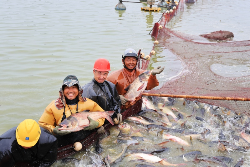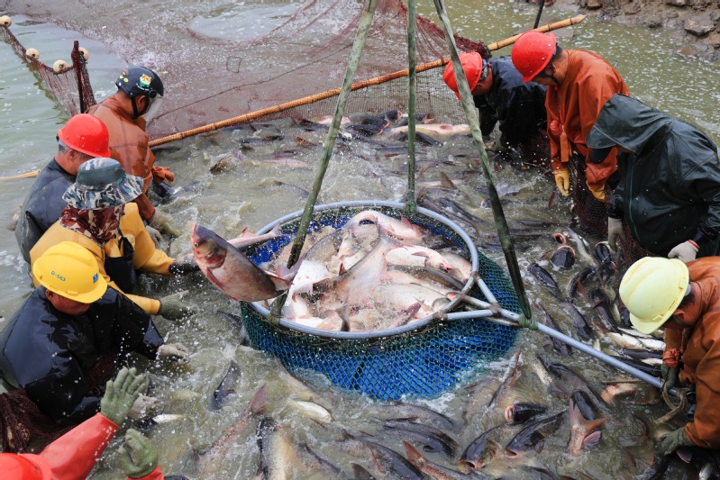 9月15日,江蘇省連云港市海州區(qū)的江蘇農(nóng)墾崗埠農(nóng)場(chǎng),水產(chǎn)工人們?cè)隰~塘里拉網(wǎng)捕撈分揀花鰱、白鰱等水產(chǎn)品,準(zhǔn)備發(fā)往周邊市場(chǎng)銷售。