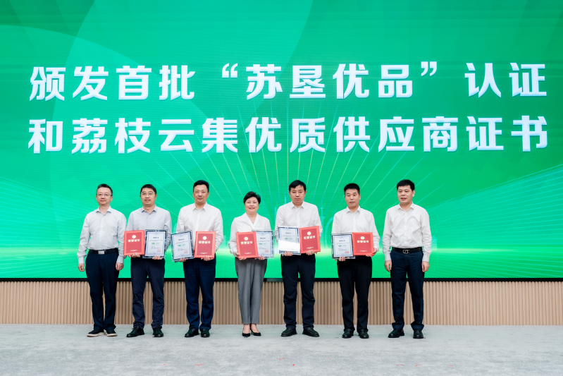 現(xiàn)場還舉行了“蘇墾優(yōu)品”認(rèn)證證書及“荔枝云集優(yōu)質(zhì)供應(yīng)商”證書頒發(fā)儀式。江蘇省農(nóng)墾米業(yè)集團(tuán)有限公司、蘇州蘇墾現(xiàn)代農(nóng)業(yè)發(fā)展有限公司、金太陽糧油股份有限公司、江蘇農(nóng)墾漁業(yè)科技有限公司、江蘇農(nóng)墾乳業(yè)科技有限公司五家企業(yè)獲得首批授權(quán)。