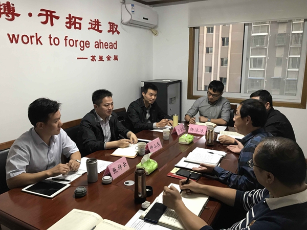10月10日下午,集團公司黨委委員、副總經(jīng)理仲小兵一行到蘇墾金屬調(diào)研指導工作,蘇墾金屬公司領(lǐng)導班子陪同。  仲小兵前往銷售網(wǎng)點、倉儲公司實地考察了解公司的具體業(yè)務情況,并聽取了蘇墾金屬前三季度經(jīng)營