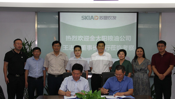 8月22日,金太陽(yáng)糧油股份有限公司董事長(zhǎng)王志榮一行到訪蘇墾農(nóng)發(fā)股份公司總部,集團(tuán)公司總經(jīng)理、蘇墾農(nóng)發(fā)股份公司董事長(zhǎng)胡兆輝,集團(tuán)公司副總經(jīng)理仲小兵,集團(tuán)公司黨委委員、蘇墾農(nóng)發(fā)股份公司總裁蘇志富與王志